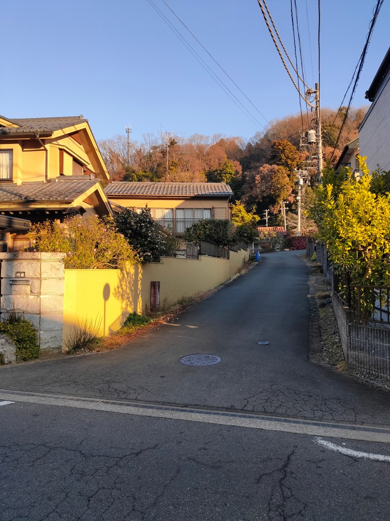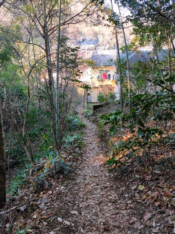 甲州街道/高尾山口駅0.3kmの看板が見えると最後の急な下りで、突然現れる民家の裏の路地を通って甲州街道に至り、ゴールです。