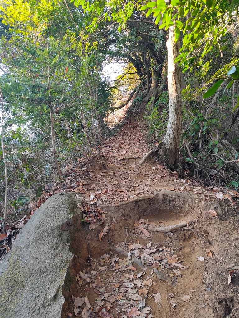 このコースは、北高尾(高尾山麓駐車場から富士見台を経て堂所山までの約11km)、奥高尾(堂所山から城山を経て大垂水峠までの約7km、高尾~陣馬往復の一部)、南高尾(大垂水峠から三沢峠を経て高尾山麓駐車場へ戻る約10km)と3つのセクションを通って高尾山の周りをぐるっと一周します。特に北高尾は小さな峠が繰り返し繰り返し繰り返し続くため、標高自体は高くなくとも結構ツラいです。