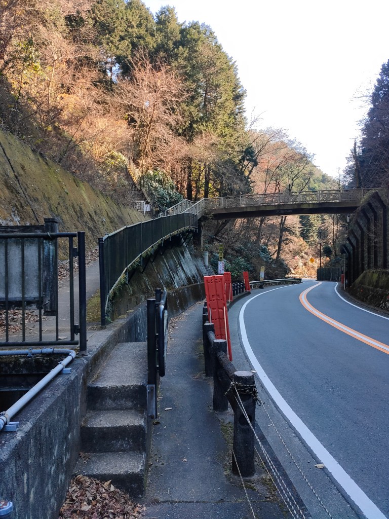 沢が見えると大垂水峠まではもうすぐ。大垂水峠の歩道橋を渡って甲州街道を横切ります。
