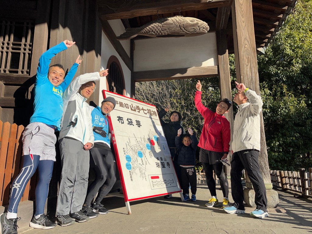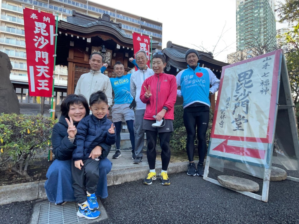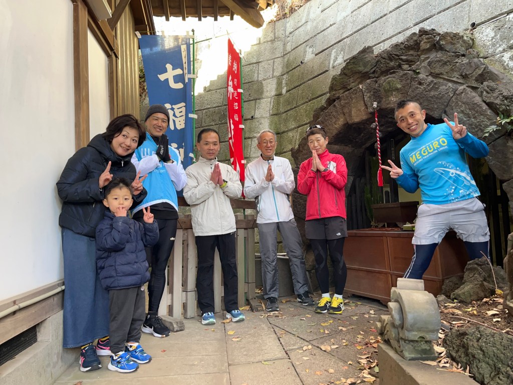 さて、1/1(月)めぐトラ元旦恒例の「山手七福神巡りラン」を開催しました。「xxx七福神巡り」は全国にたくさんあると思いますが、目黒の七福神巡りは「江戸最初」を標榜する伝統あるもののようです(こちらを参照)。一般的に「七福神巡り」とは正月松の内(1月1日~7日)の間に七福神を祀る寺社を巡拝して開運を祈るイベントですが、僕らは元旦に目黒区民センターに集まり、清正公・覚林寺から目黒不動こと瀧泉寺に至る6つの寺社(白金の妙円寺は福禄寿と寿老人の二柱を祀っています。お得です)、約10kmを走って巡ります。