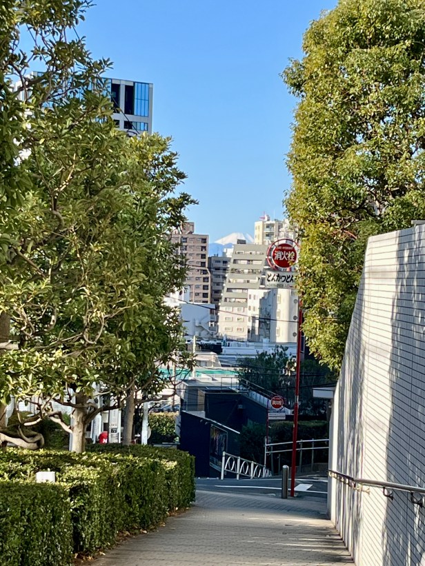 途中、目黒駅から行人坂を下って大圓寺に向かう際、天気が良いと富士山がよく見えます。今年は素晴らしい眺めでした!